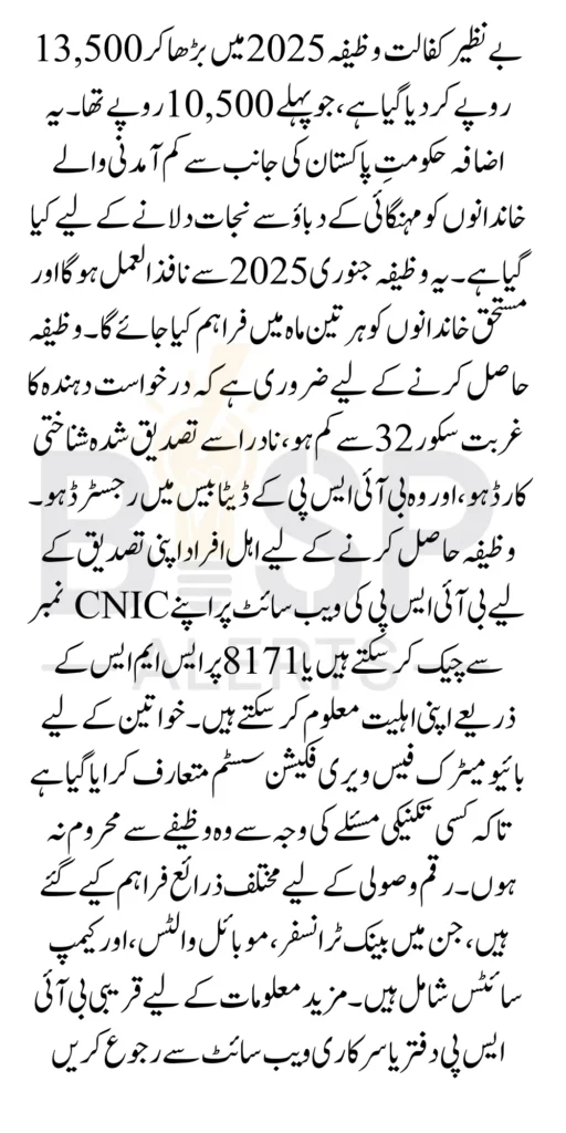 Benazir Kafalat Stipend Increase 13500