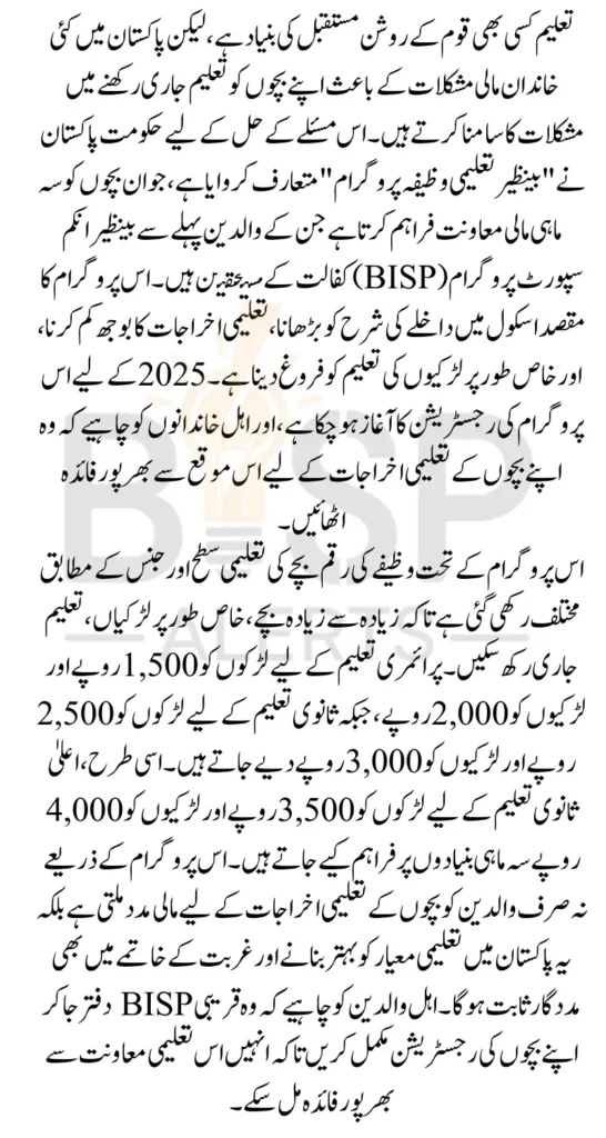 You Can Also Read: Benazir Taleemi Wazaif Program Registration Payment In 2025