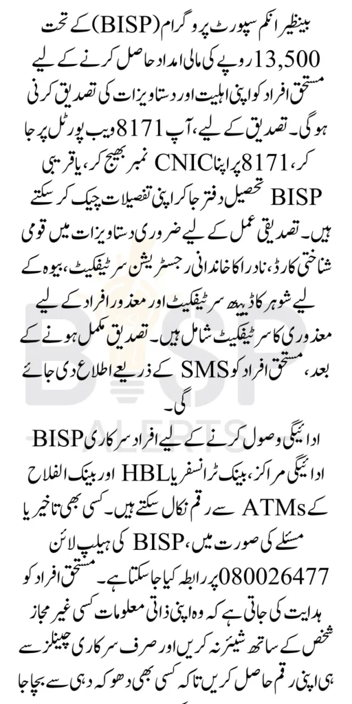 Eligibility Criteria for BISP 8171 Payment