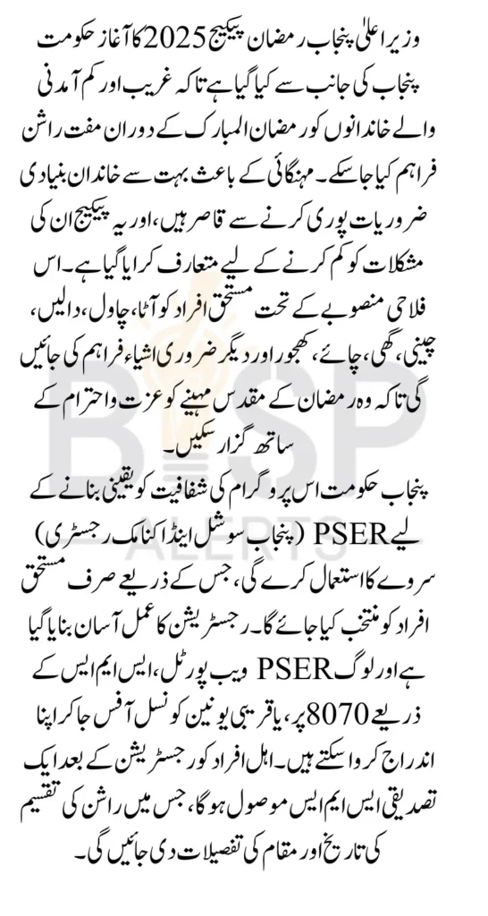 The Punjab Government has set specific eligibility criteria to ensure that only truly deserving individuals benefit from this program. The PSER survey will play a key role in verifying applicants’ financial status before approving them for the free Rashan package.