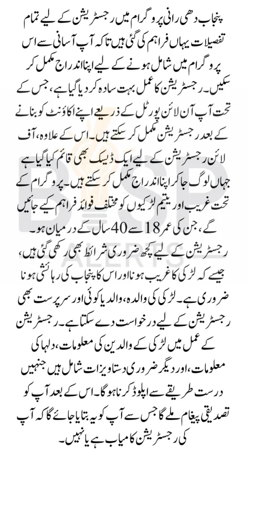 This program will tell you what factors are involved in registration. A portal is used for registration. In the official Punjab Dhee Rani Programme, you will create your account on the portal and after that, you will complete your registration process by logging into the portal. For more information and details read the article on the website carefully.